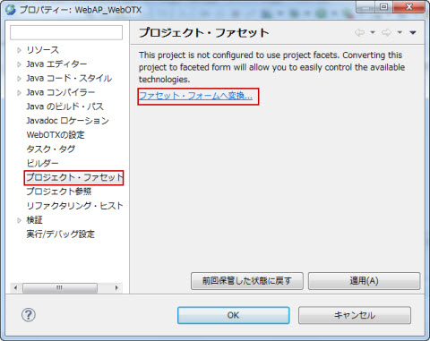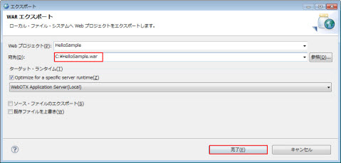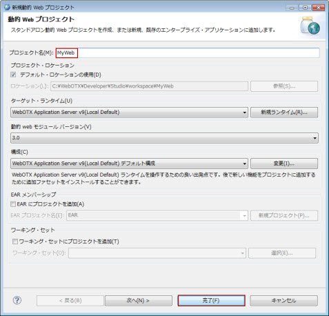 コンテントディレクトリの変更が可能です。 デフォルトはWebContent です。 |