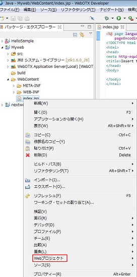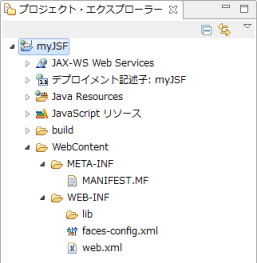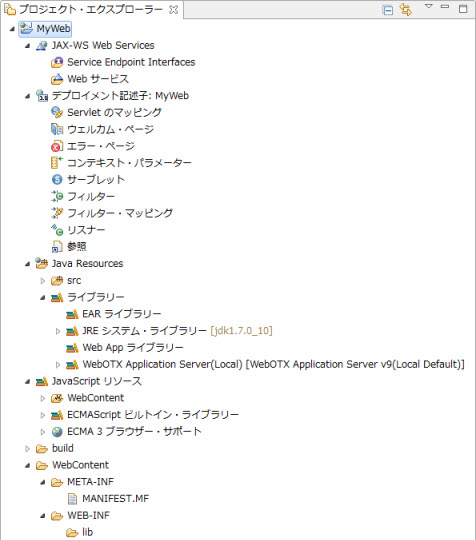 | プロジェクトルート(MyWeb) | プロジェクトのルートディレクトリです。任意のHTML・JSPファイルやイメージファイル・ディレクトリなどを配置します。 |