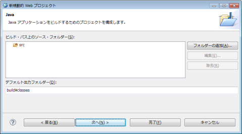 | build/classes | Webプロジェクトの出力フォルダです。ソース・フォルダー中のソースファイルのコンパイルにより生成されたファイルが格納されます。 |