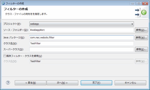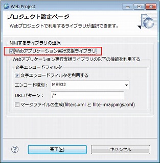 Webアプリケーションを開発する際に汎用的に利用できるライブラリです。JARファイルとTLDファイルをプロジェクトに配置します。プロジェクト作成時に文字エンコードフィルタの利用選択ができます。 |