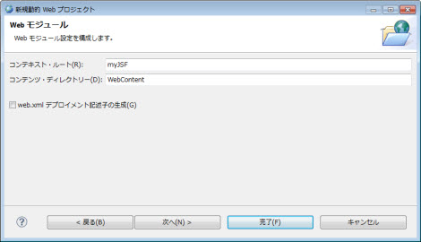 コンテキストルートの変更が可能です。 デフォルトはプロジェクト名です。 |