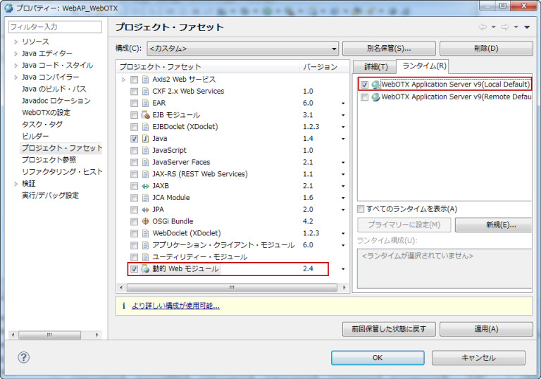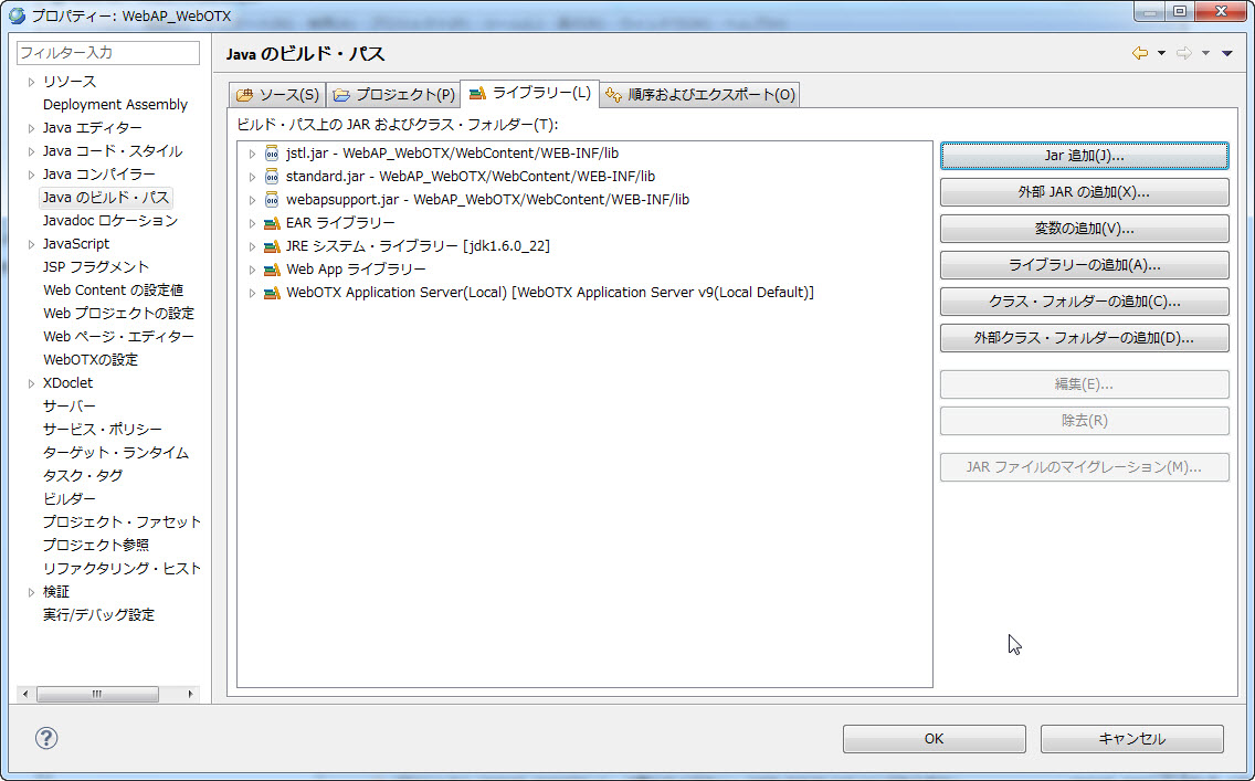 EAR ライブラリー JREシステム・ライブラリー Web App ライブラリー WebOTX Application Server(Local) |