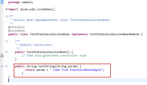 return param + " come from StatelessBeanSample";";
