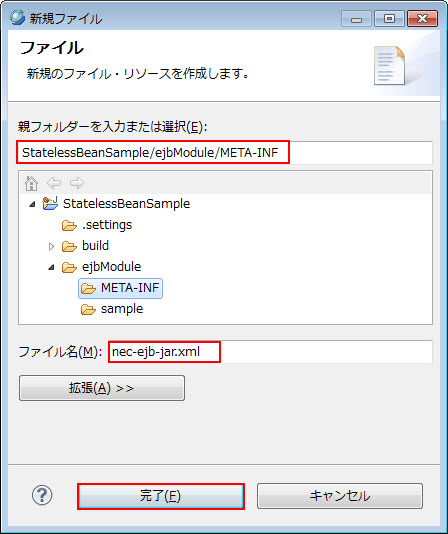 ファイル名 にnec-ejb-jar.xmlを入力します。