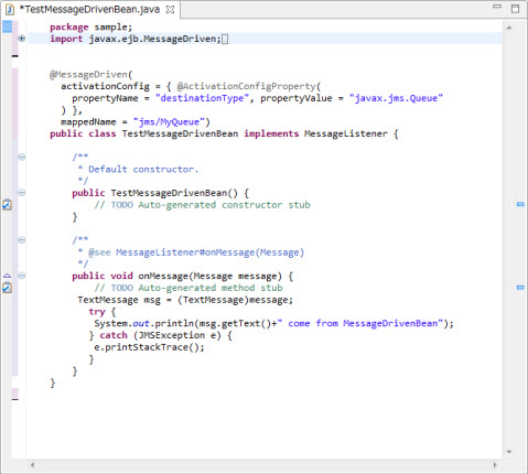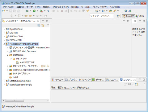 MessageDrivenBeanSampleプロジェクトにメッセージ駆動型Beanのソースが追加されます。