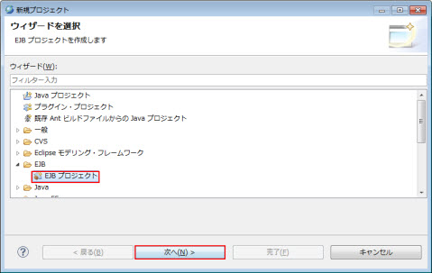 EJB > EJB プロジェクト を選択して、次へ をクリックします。