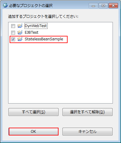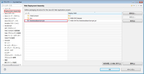 ・ Java EEモジュール依存関係での選択項目(DynWebTest, SingletonBeanSample)