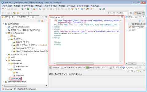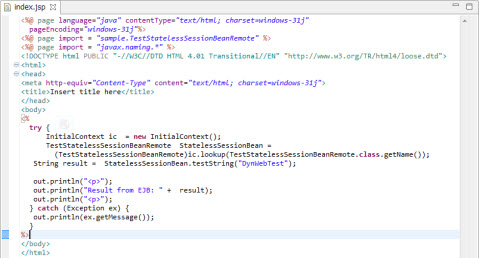 Web プロジェクトからEJB プロジェクトへアクセスする、index.jspを作成します。