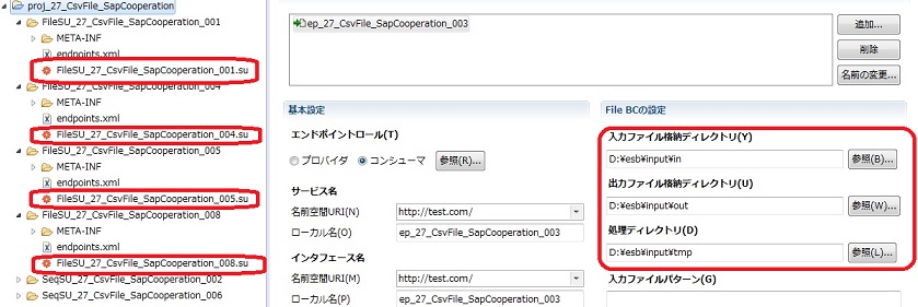 パッケージ・エクスプローラから各File BCのFileSUをダブルクリックしてSUエディタを開き、エンドポイントを選択します。