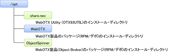 本バージョンでインストール・ベースディレクトリとして/opt以外を使用する場合、製品インストール後のディレクトリ構成は以下のようになります。
