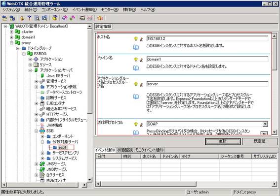 【図8.1.3l】「ProxyドメインでESBインスタンスの設定」の画面