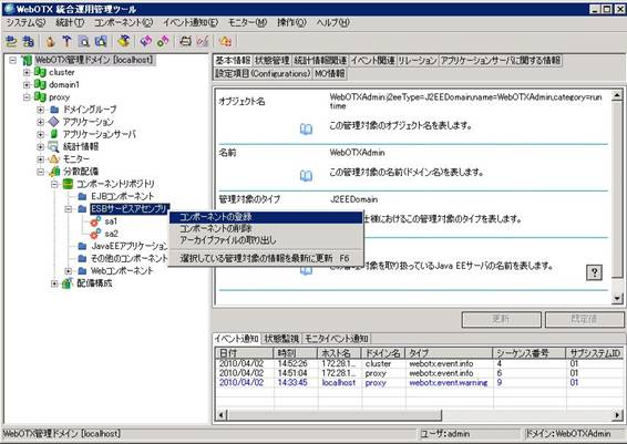 サービスアセンブリを配備する前に、サービスアセンブリをProxyドメインの「コンポーネントリポジトリ」に登録する必要があります。