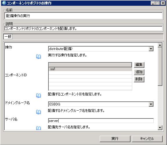 コンポーネントリポジトリから登録したサービスアセンブリを選択し、配備先の情報を指定し、分散配備を行います。
