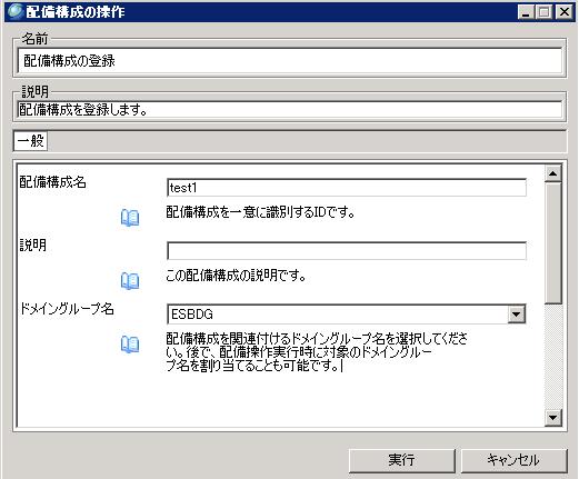 ・「配備構成」を選択し、右クリックして表示される操作から「配備構成の登録」を選択すると、以下の実行画面が表示されます。「配備構成名」を入力し、ドメイングループ名を選択して「実行」ボタンを押してください。