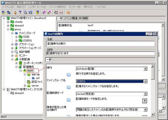 ・作成した「配備構成(図8.1.3tのtest1)」の「配備操作の実行」メニューを選択し、サービスアセンブリの一括配備を行います。