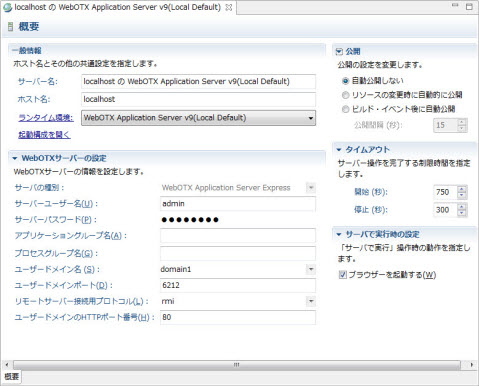 サーバーの設定を行っていない場合、WebOTXマニュアル1.2.4.1. WebOTXランタイムの設定 を参照の上、設定を行ってください。