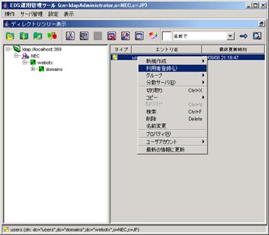 (*1)Enterprise Directory ServerとはNECが提供しているLDAPサーバです。WebOTXのCD5枚目(Linuxは4枚目)からインストールすることができます。利用する場合は、セットアップカード(EDS_SetupCard.pdf) を参照して、WebOTXがインストールされている環境にインストールしてください。セットアップカードはCD4枚目(Linuxは3枚目)に含まれています。
