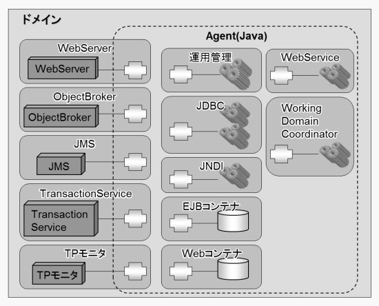 そこで、WebOTX AS のログの概要を理解するために、まずはWebOTX AS を構成するサービスの関係について説明します。