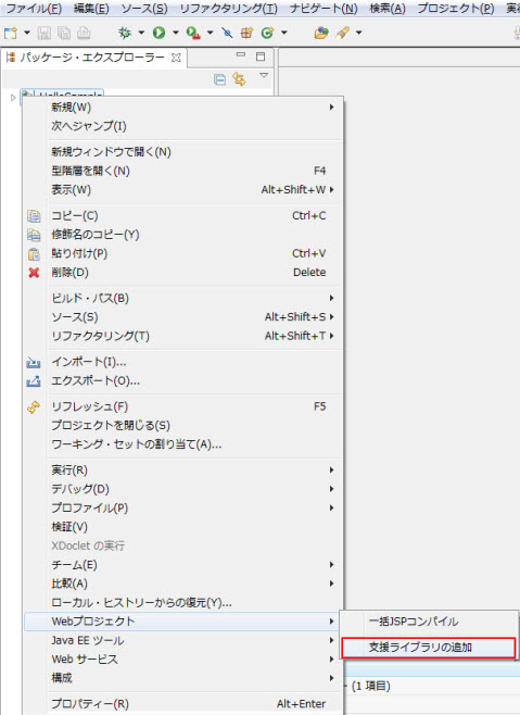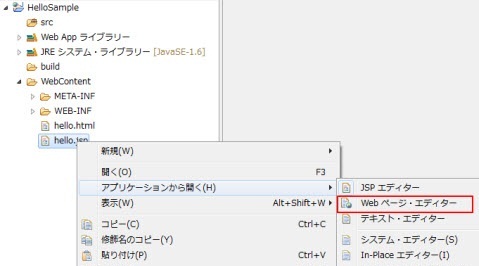 下図は、Java EEパスペクティブ(プロジェクト・エクスプローラー)の場合です。