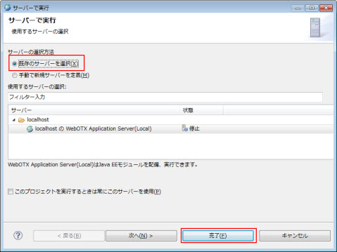 実行支援ライブラリを利用する場合は、Javaパースペクティブである必要があります。