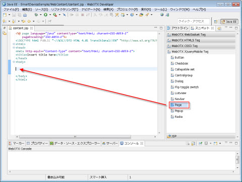 1行目のpageEncodingの値はJSPファイルのエンコード形式を示すため、エディタのテキストファイルエンコードの設定により変動します。