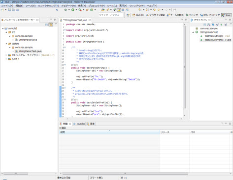 またソース編集機能やCVSによる版管理やJUnitによるテストなどの開発ツールとしての標準機能も兼ね備えており、