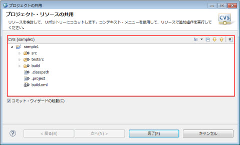 [同期化]ビューでリソースをコミットします。[同期化]ビューで表示される[JavaProj]プロジェクトを右クリックしコミットを選択します。