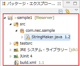 チェックアウトが完了したらパッケージ・エクスプローラにJavaプロジェクトである「JavaProj」プロジェクトが作成されチェックアウトされていることが確認できます。