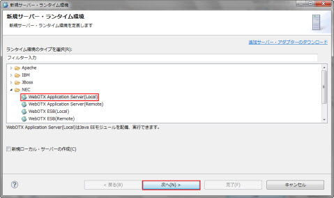 WebOTX Developer's Studioには、アプリケーションのデバッグ/テスト用に評価版 WebOTX Application Server Expressを同梱しており、
