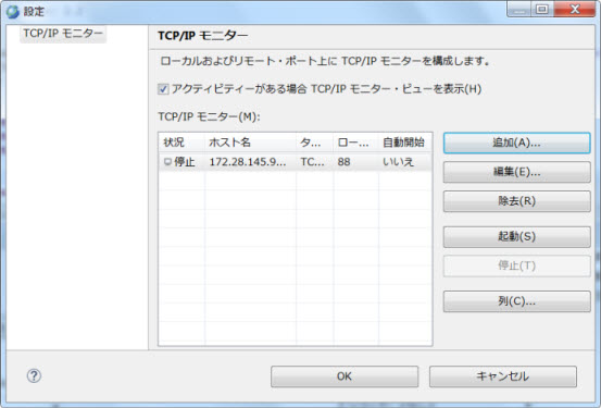 デバッグ配下のTCP/IP モニターを選択し、OKをクリックします。