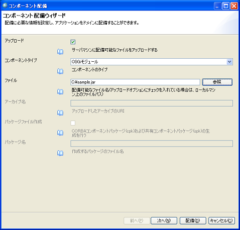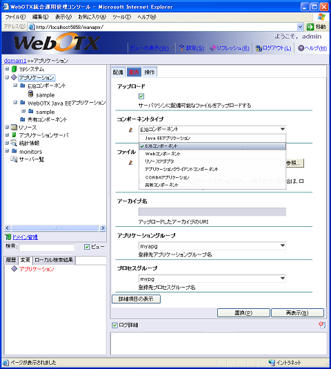 作成したアプリケーションをWebOTX ASの管理下におく作業です。アプリケーションを配備するためには、ドメインが起動している必要があります。配備するアプリケーションは、あらかじめearやwar等の形式でパッケージ化しておきます。