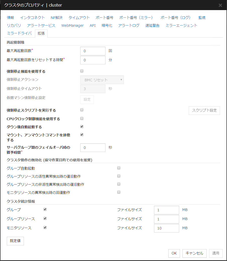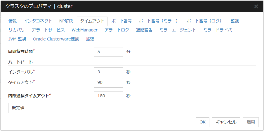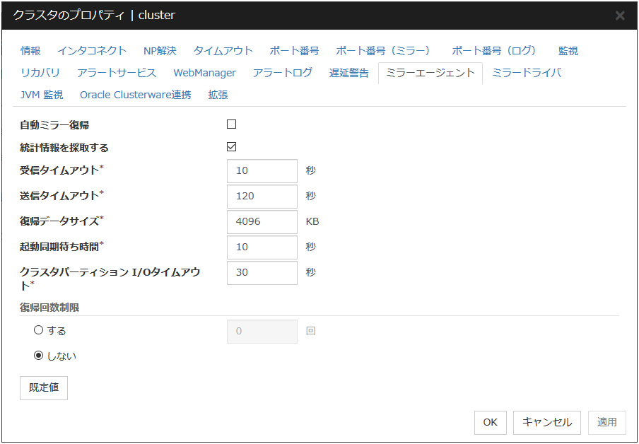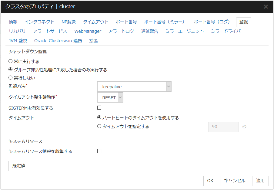 | ヘルスチェックのタイムアウト時動作 | 回復動作を実行しない | O | ||||||||||