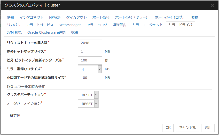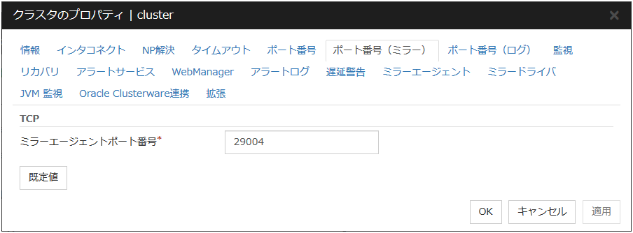 ハートビートに使用する経路を [カーネルモード]、[ユーザモード]、[DISK]、[COM]、[BMC]、[Witness]、[ミラー通信専用] より選択します。