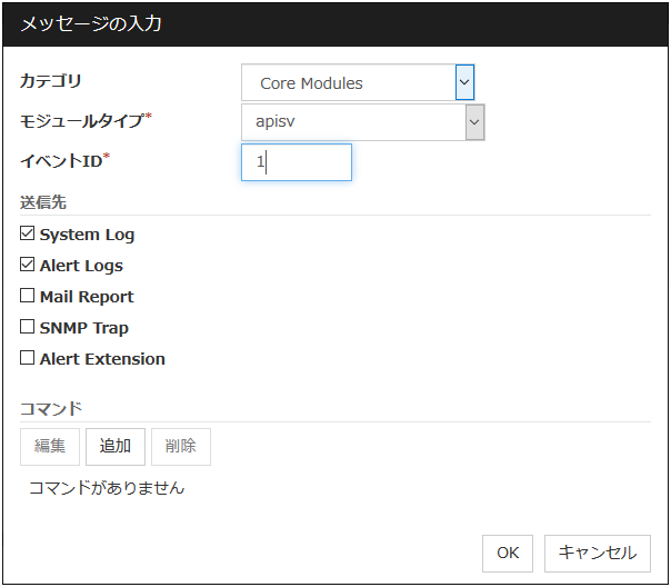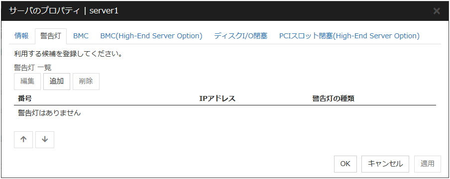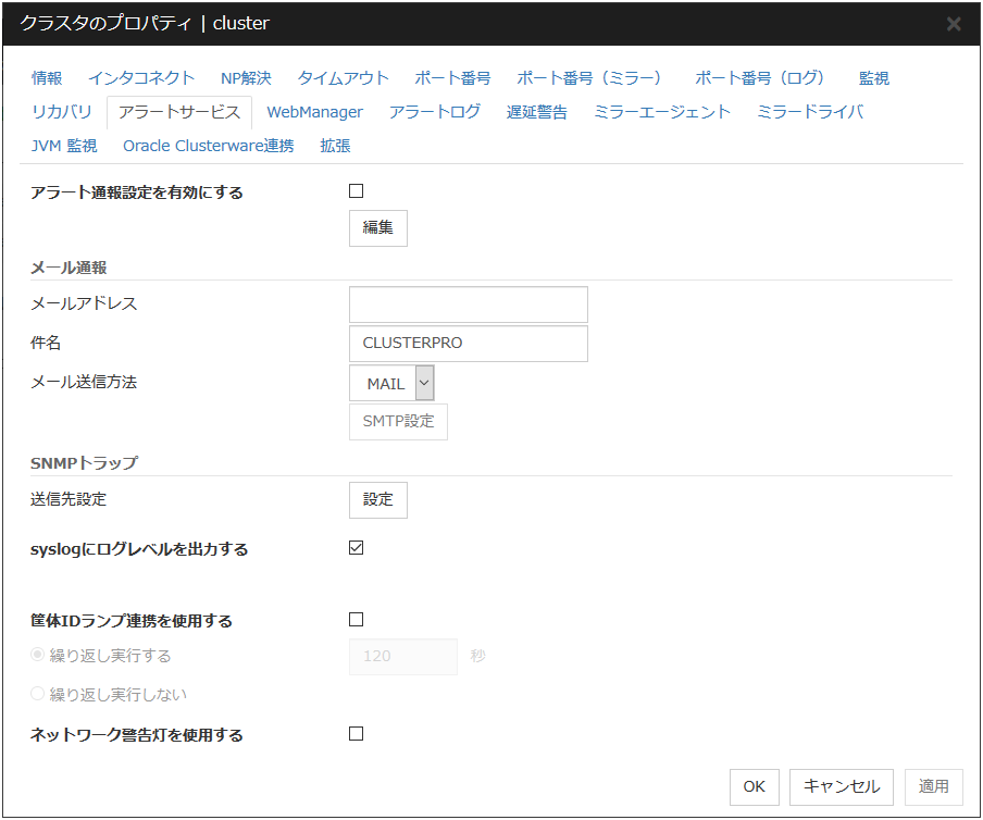 チェックボックスがオンサーバダウン通知を行います。 チェックボックスがオフサーバダウン通知を行いません。注釈