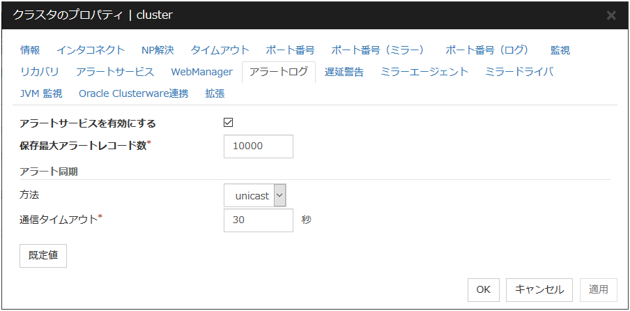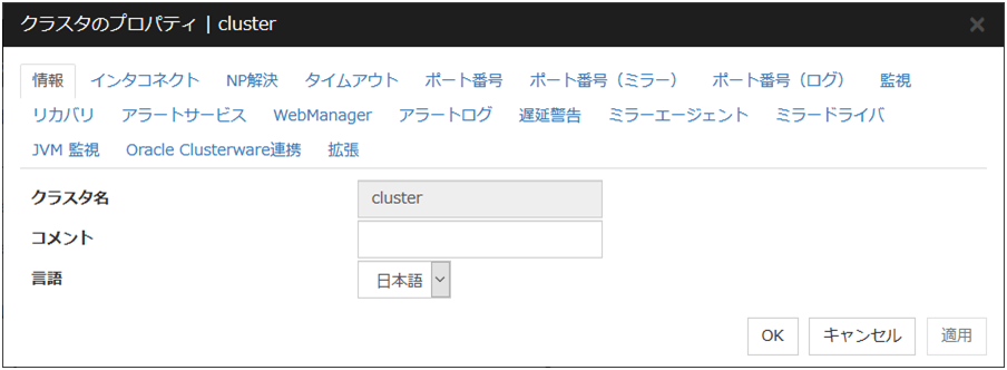 クラスタのプロパティでは、クラスタの詳細情報の表示や設定変更ができます。