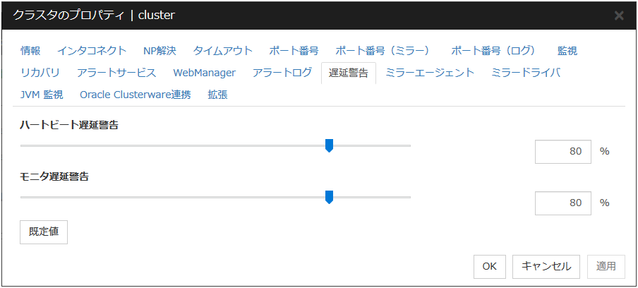 ネットワークパーティション I/F の設定変更を行います。[NP 解決一覧] には、CLUSTERPRO で使うネットワークパーティション解決I/Fが表示されます。