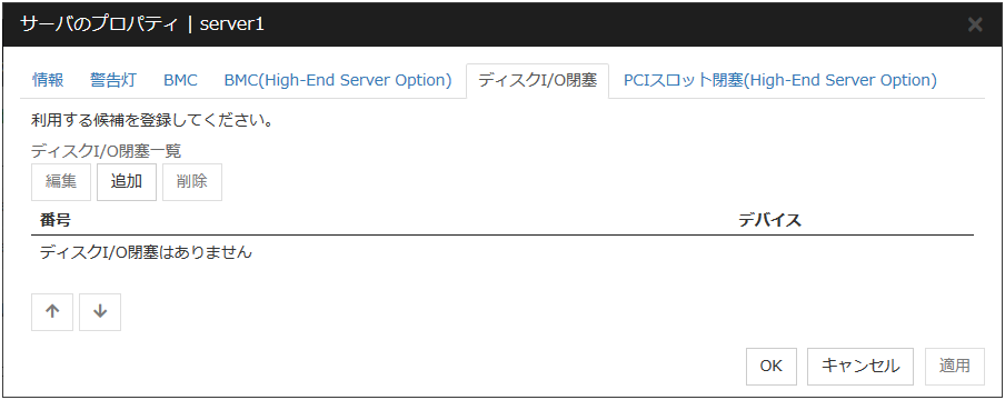 DISK、COM、BMC、Witnessミラーディスクコネクトは使用できません。[MDC] 列は自動的に [使用しない] となり、編集不可となります。