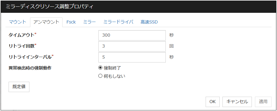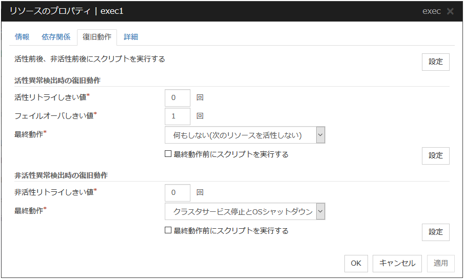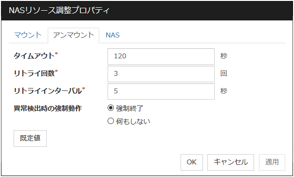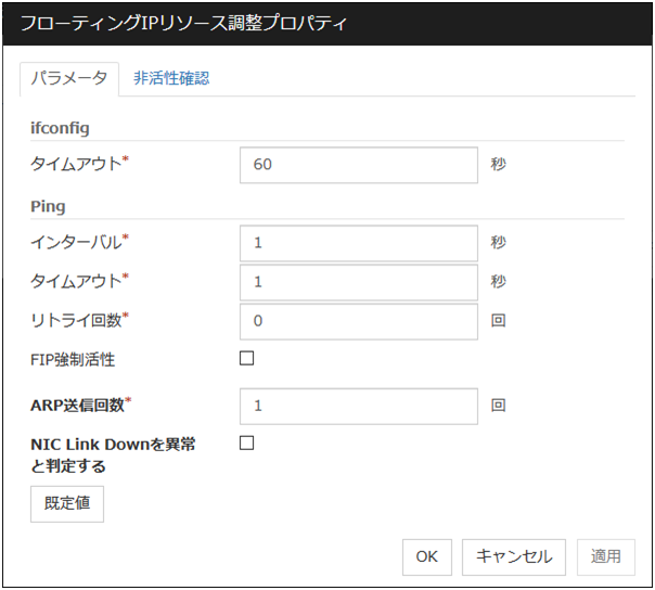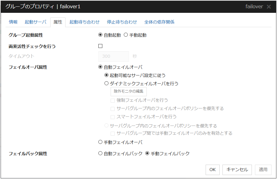 - フェイルオーバ属性フェイルオーバ属性ではフェイルオーバの方法を設定します。設定可能なフェイルオーバ属性は以下になります。
