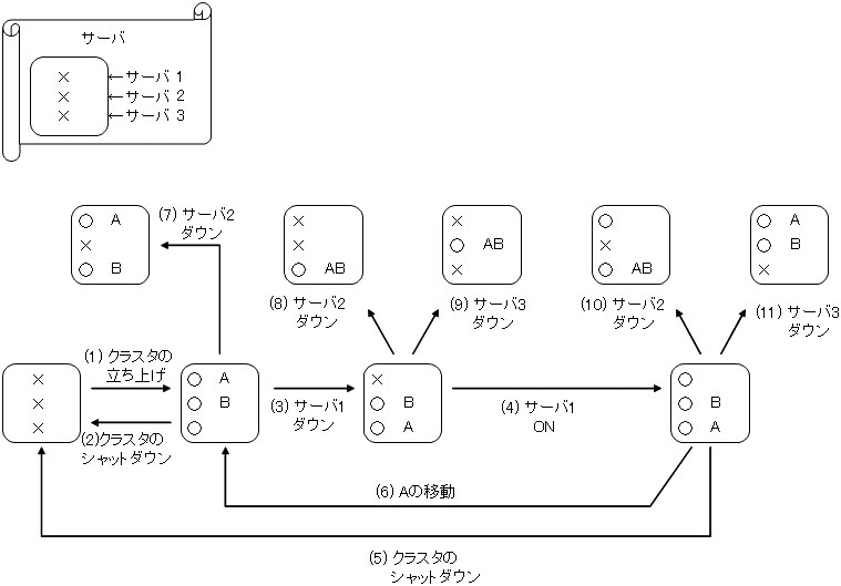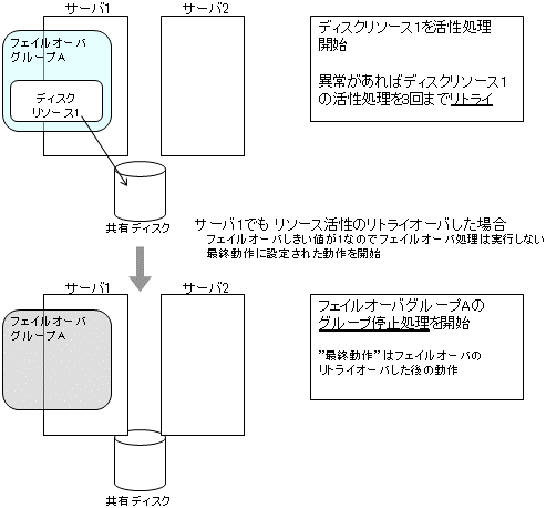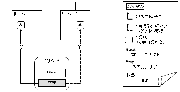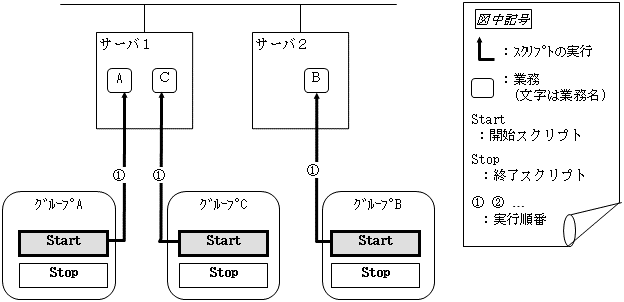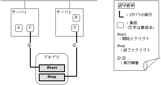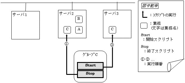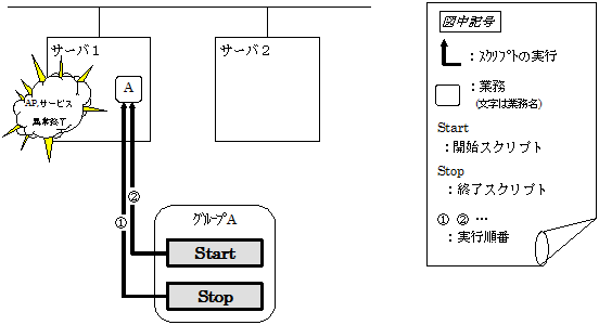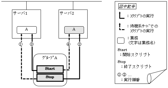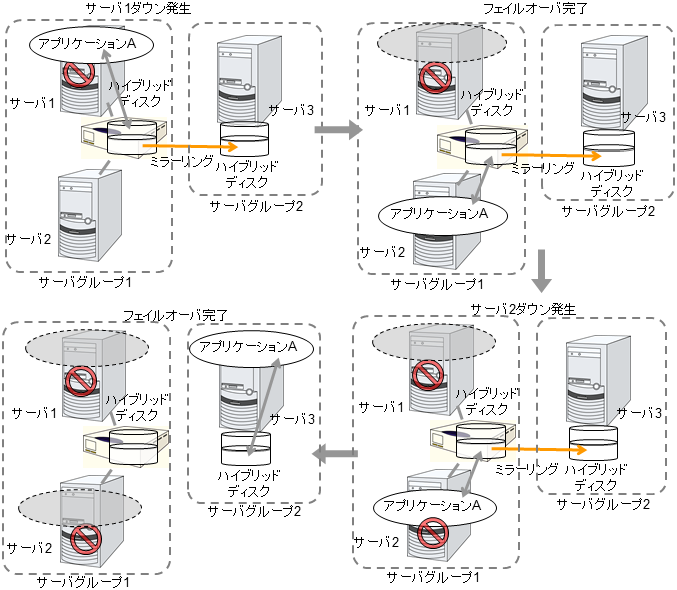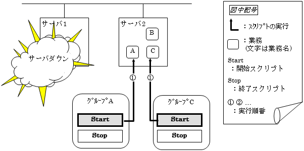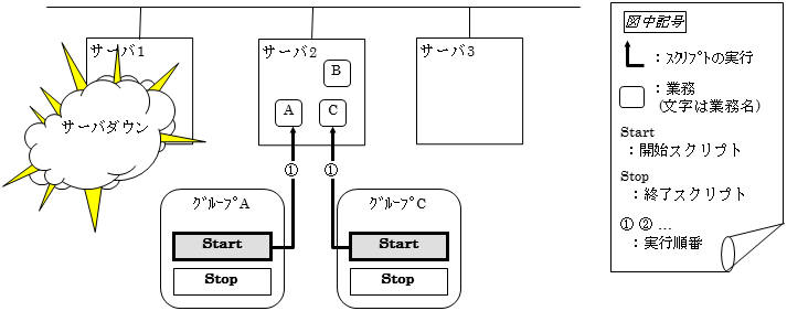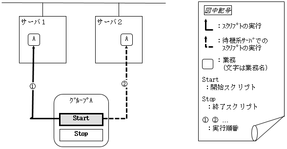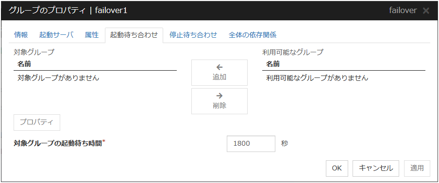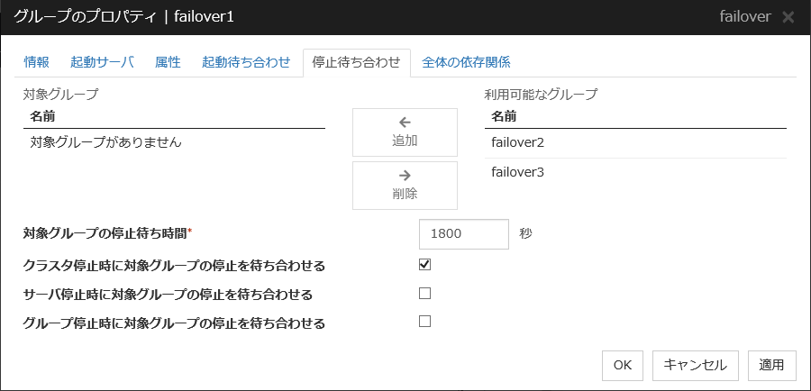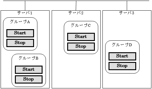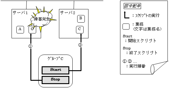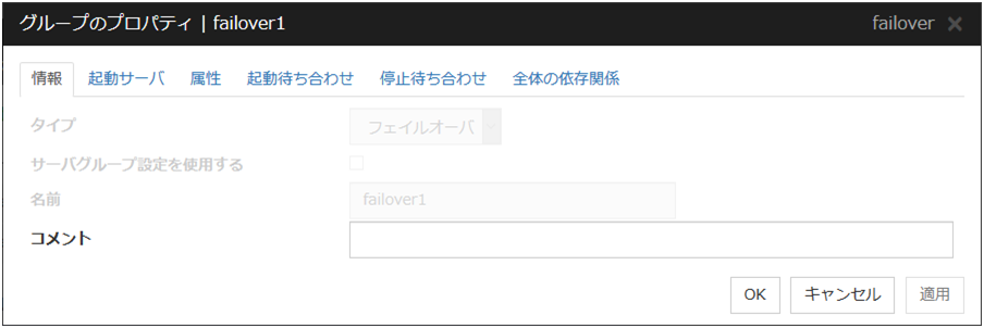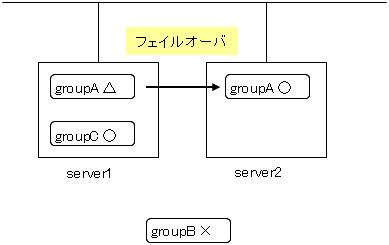 グループとはフェイルオーバを行う単位です。グループにはフェイルオーバ時の動作に関する規則 (フェイルオーバポリシー) が設定できます。