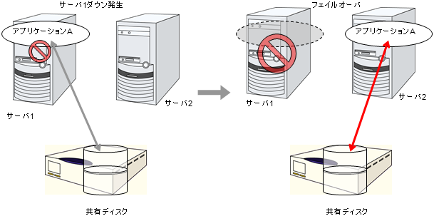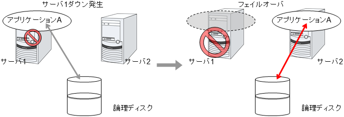 - フェイルオーバグループ業務を継続するために必要なリソースをまとめ、業務単位でフェイルオーバを行います。各グループには最大 256のグループリソースが登録できます。ただし仮想マシンリソースは登録することができません。