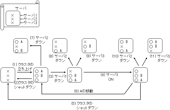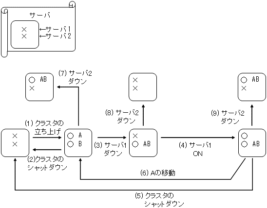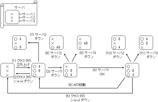 - 起動可能なサーバ設定に従う起動可能なサーバに設定されているサーバのプライオリティに従い、フェイル オーバ先を決定します。