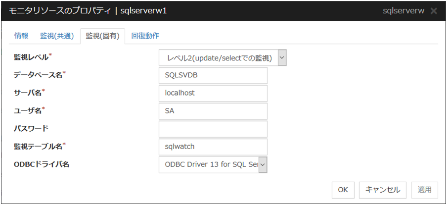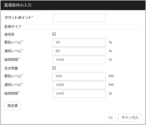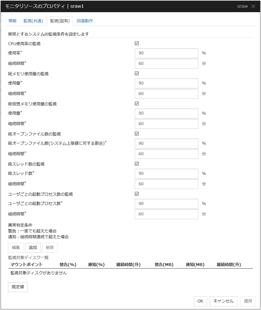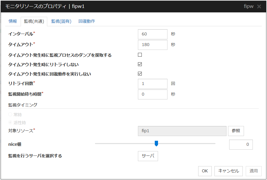 チェックボックスがオン(既定)登録した IP アドレスが仮想ホスト名(DNS 名)の名前解決によって得られるかを確認します。 チェックボックスがオフ監視しません。