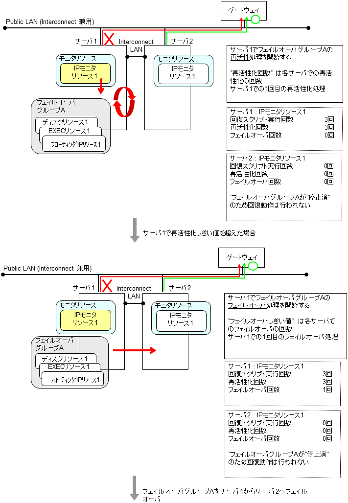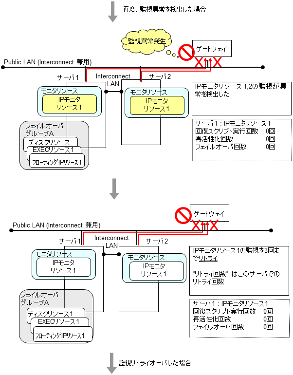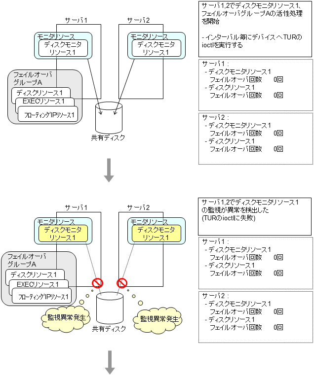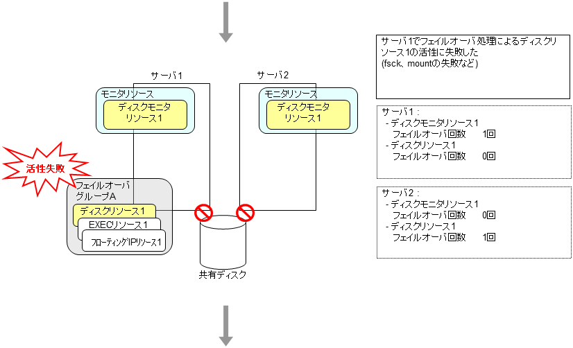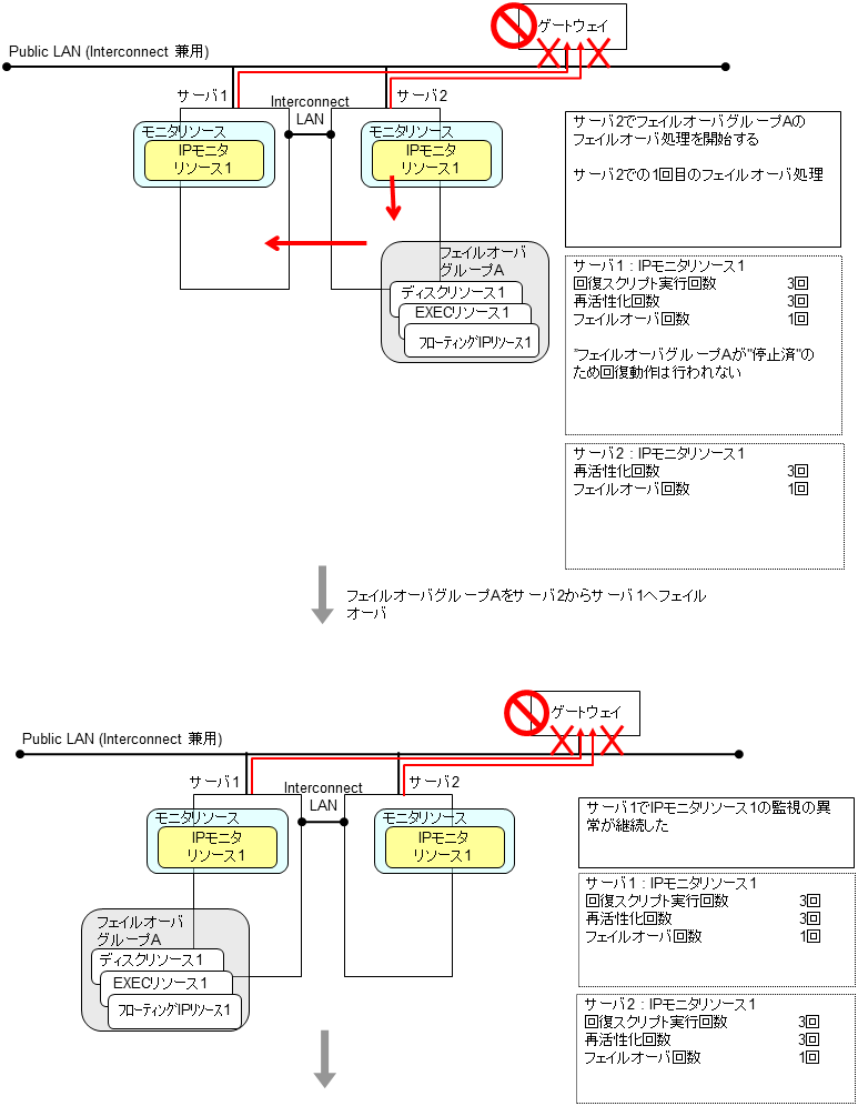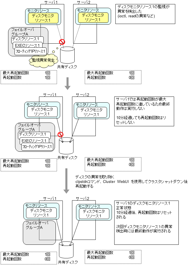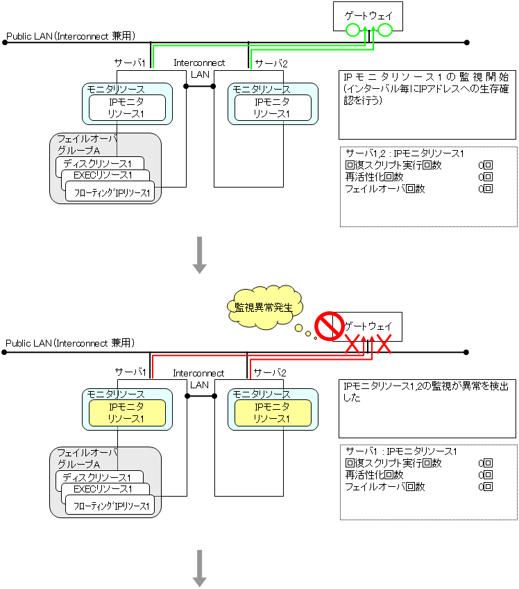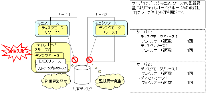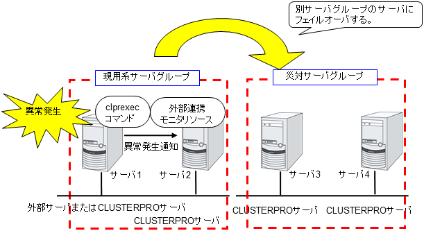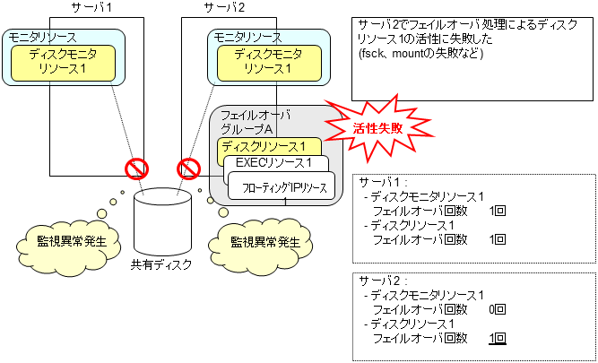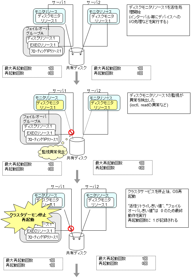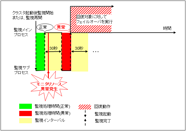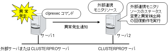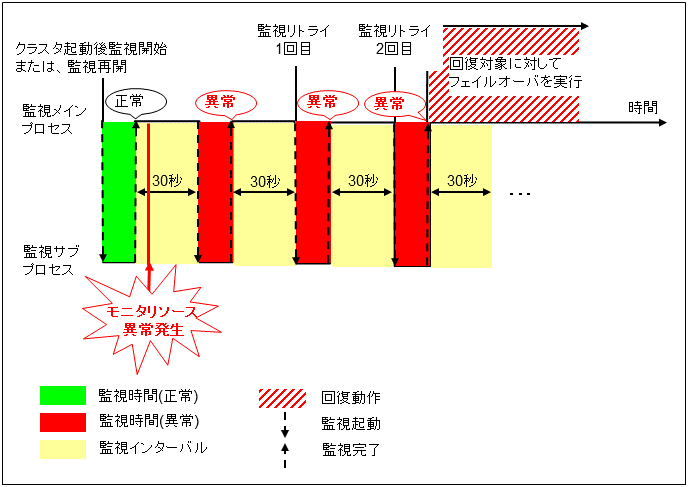 モニタリソースとは、指定された監視対象を監視するリソースのことを指します。監視対象の 異常を検出した場合には、グループリソースの再起動やフェイルオーバなどを行います。