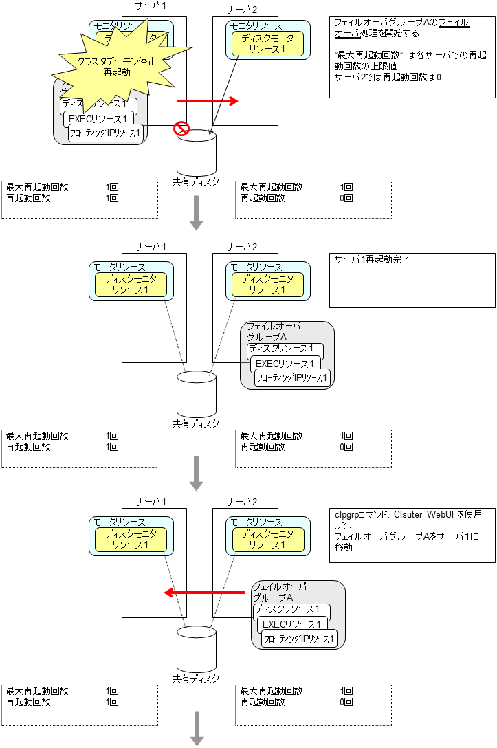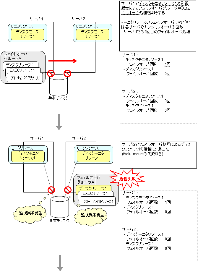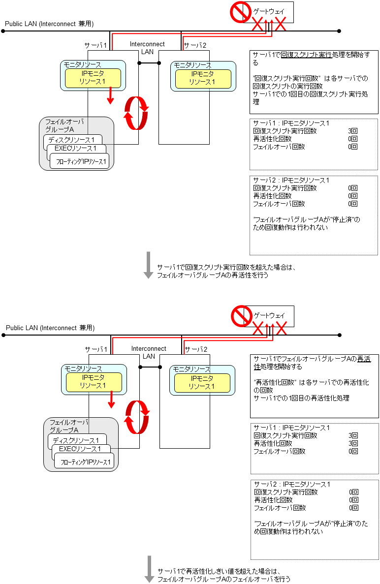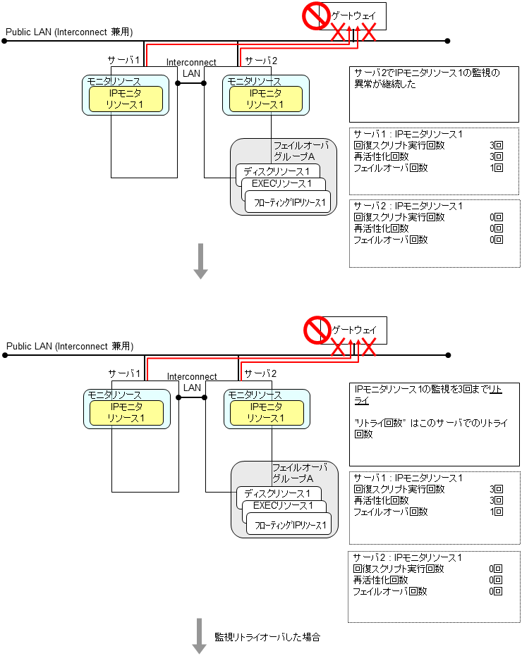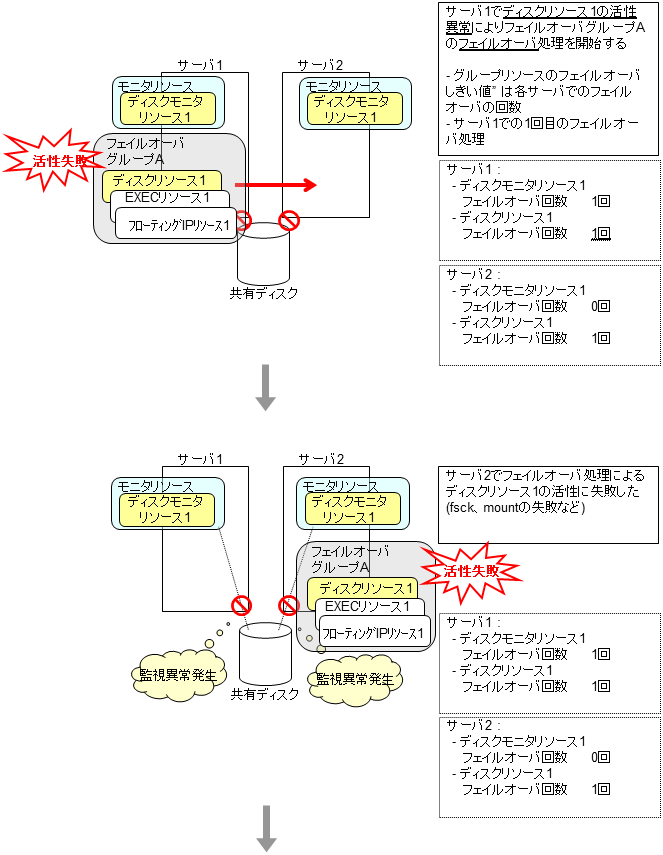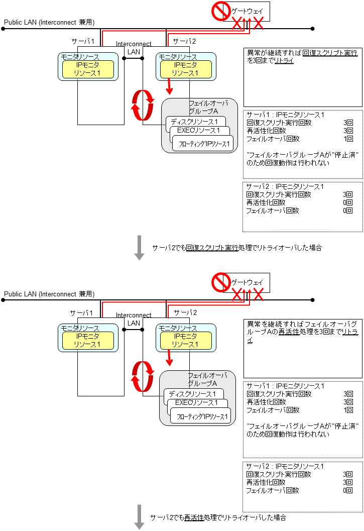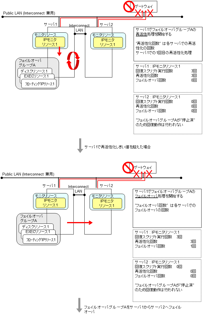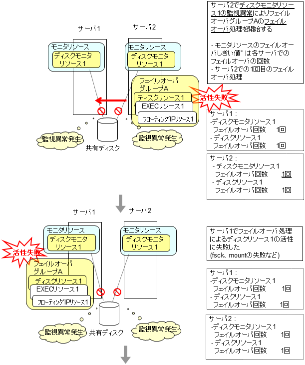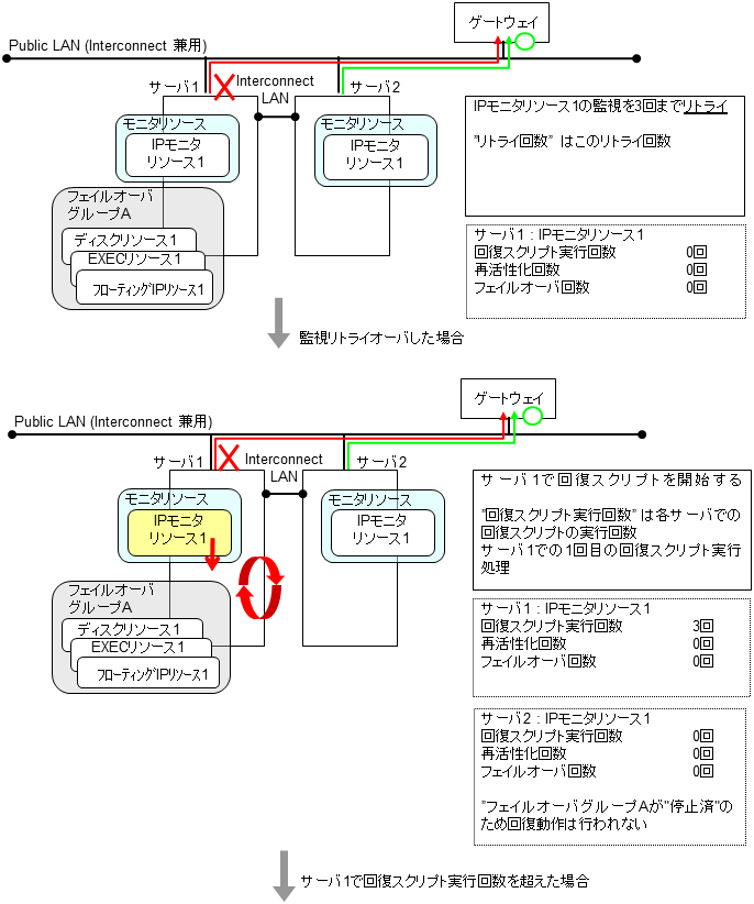 モニタリソースとは、指定された監視対象を監視するリソースのことを指します。監視対象の 異常を検出した場合には、グループリソースの再起動やフェイルオーバなどを行います。