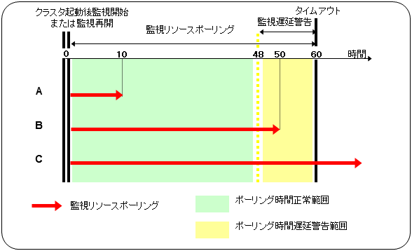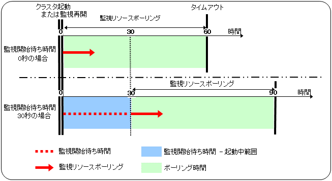 Google Cloud 仮想 IP モニタリソースでは、Google Cloud 仮想 IP リソースでのヘルスチェック待ち受けのタイムアウトの発生有無を監視します。そのため、Google Cloud 仮想 IP モニタリソースの監視インターバルは、監視対象の Google Cloud 仮想 IP リソースで設定した [ヘルスチェックのタイムアウト] の値より、大きな値を設定する必要があります。