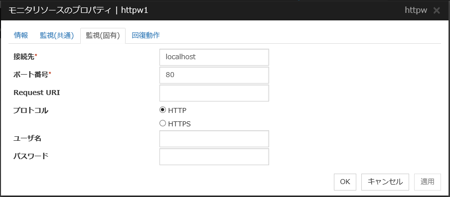 HTTP モニタリソース 1 |