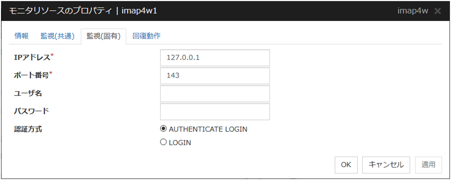 IMAP4 モニタリソース 1 |