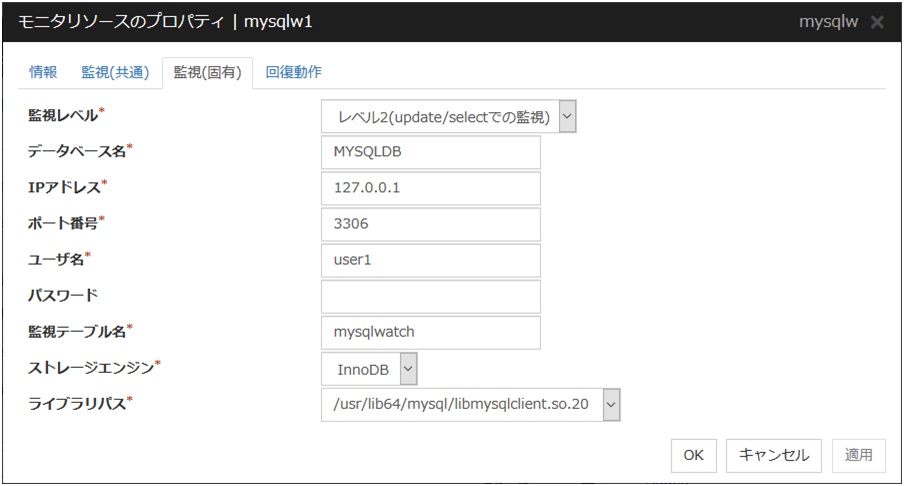MySQL モニタリソース 1 |