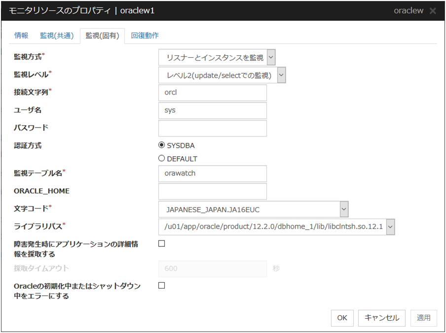 Oracle モニタリソース 1 |
