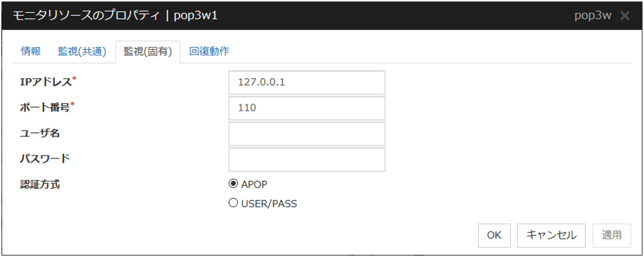 POP3 モニタリソース 1 |